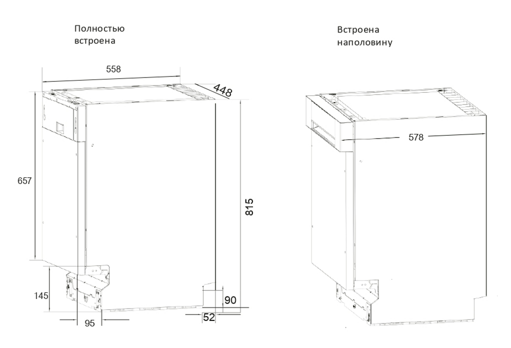 - Recess size for embedding (WxHxD), mm 820х450х580