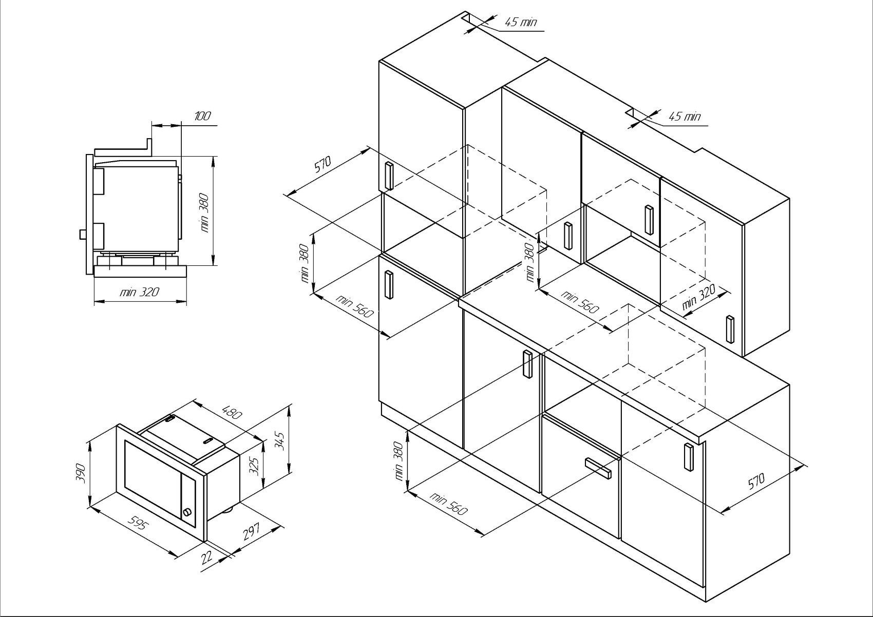- Microwave oven type built-in box or column