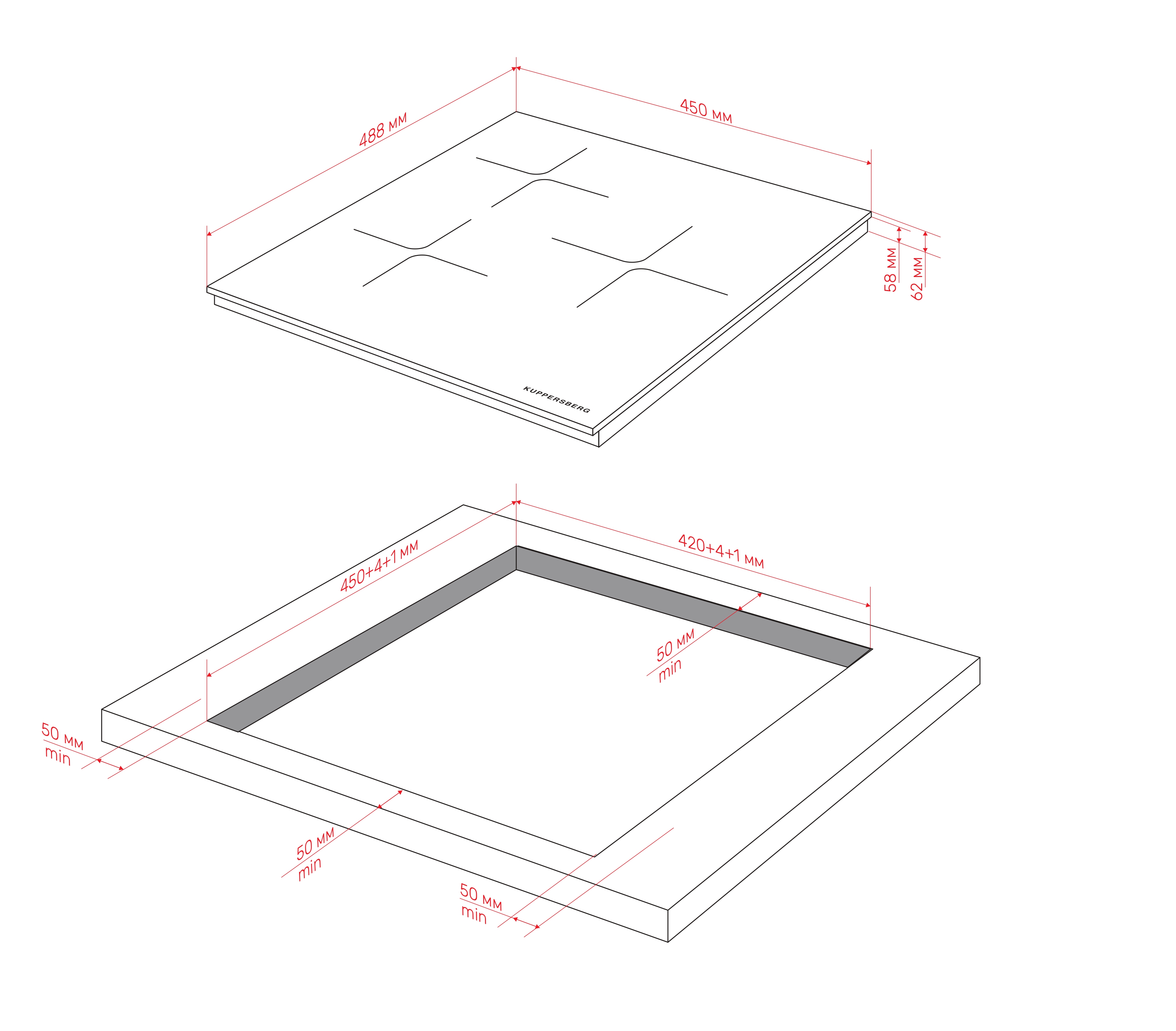 • Burner power, kW: rear left 1,8 кВт / 2,0 кВт