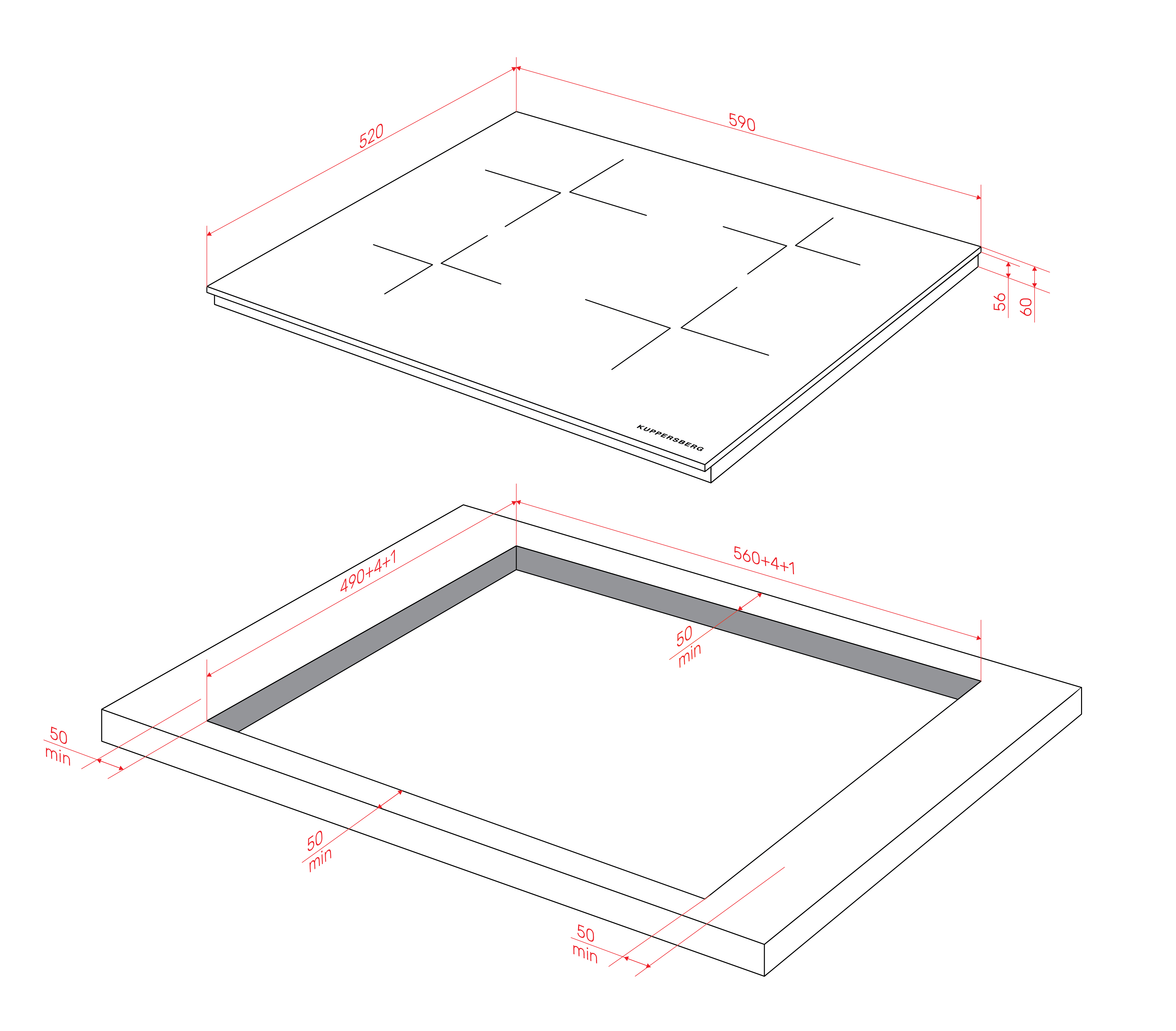 • Recess size for embedding (WxD), mm 560x490