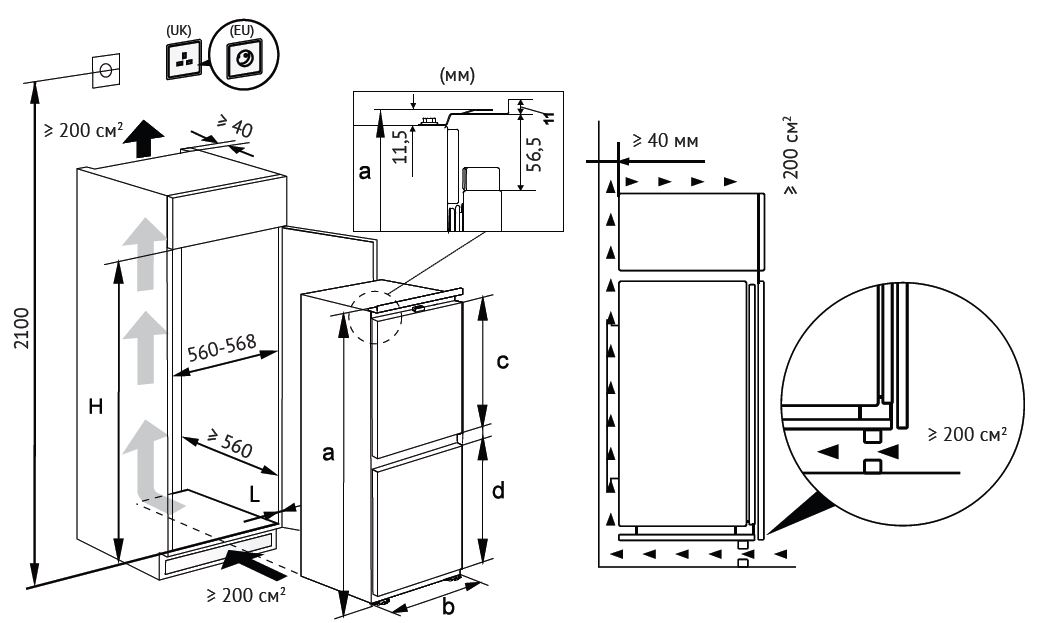 • Recess size for embedding (WxHxD), mm 560х1935х560