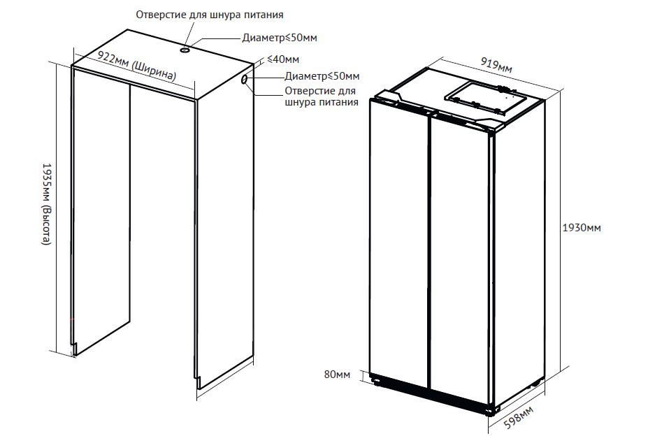 • Recess size for embedding (WxHxD), mm 922х1935х600