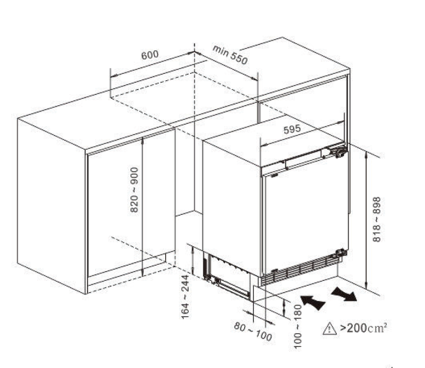 • Recess size for embedding (WxHxD), mm 600x820x550
