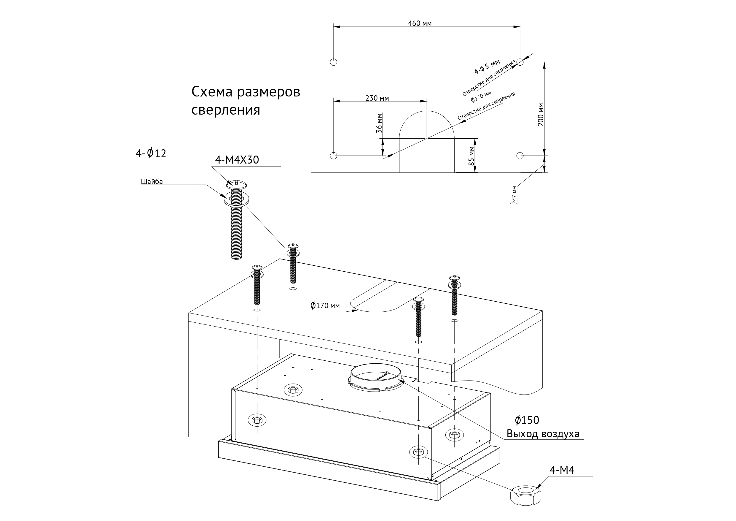 • Диаметр воздуховода 150 мм